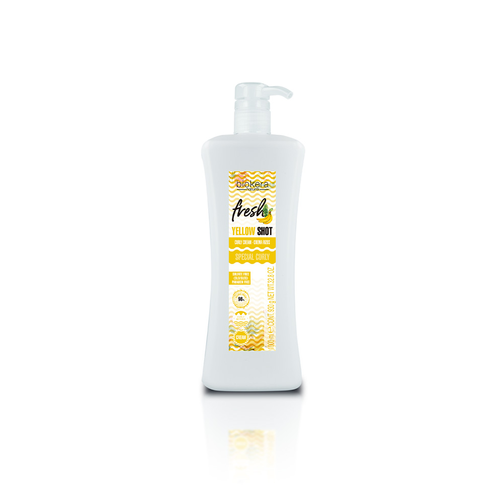 Biokera Fresh Yellow Shot Curly Cream je stylingový krém pro vytvoření hebkých a krásně tvarovaných a plných vln. Se 100% veganským složením a s 98% přírodních složek. Tento veganský krém byl vytvořen tak, aby pečoval jak o vnější, tak vnitřní strukturu vlnitých vlasů, odstranil krepatost vlasů a jemně definoval a podpořil vlnitý styling. Krém neobsahuje sulfáty, silikony a parabeny a je vhodný pro všechny typy vln. Dermatologicky testováno.